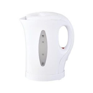 Ceci est une bouilloire électrique de marques "Home Essentials" et "Tristar" d'une capacité de 1 litre et 1 litre 70 centilitres, d'une puissance de 1200 W.