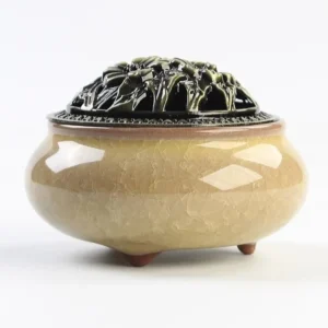 Brûleur d'encens en céramique 3 en 1 porte bobine cône porte encens cendrier avec couvercle en laiton et porte encens en forme de gourde pour décoration d'intérieur.