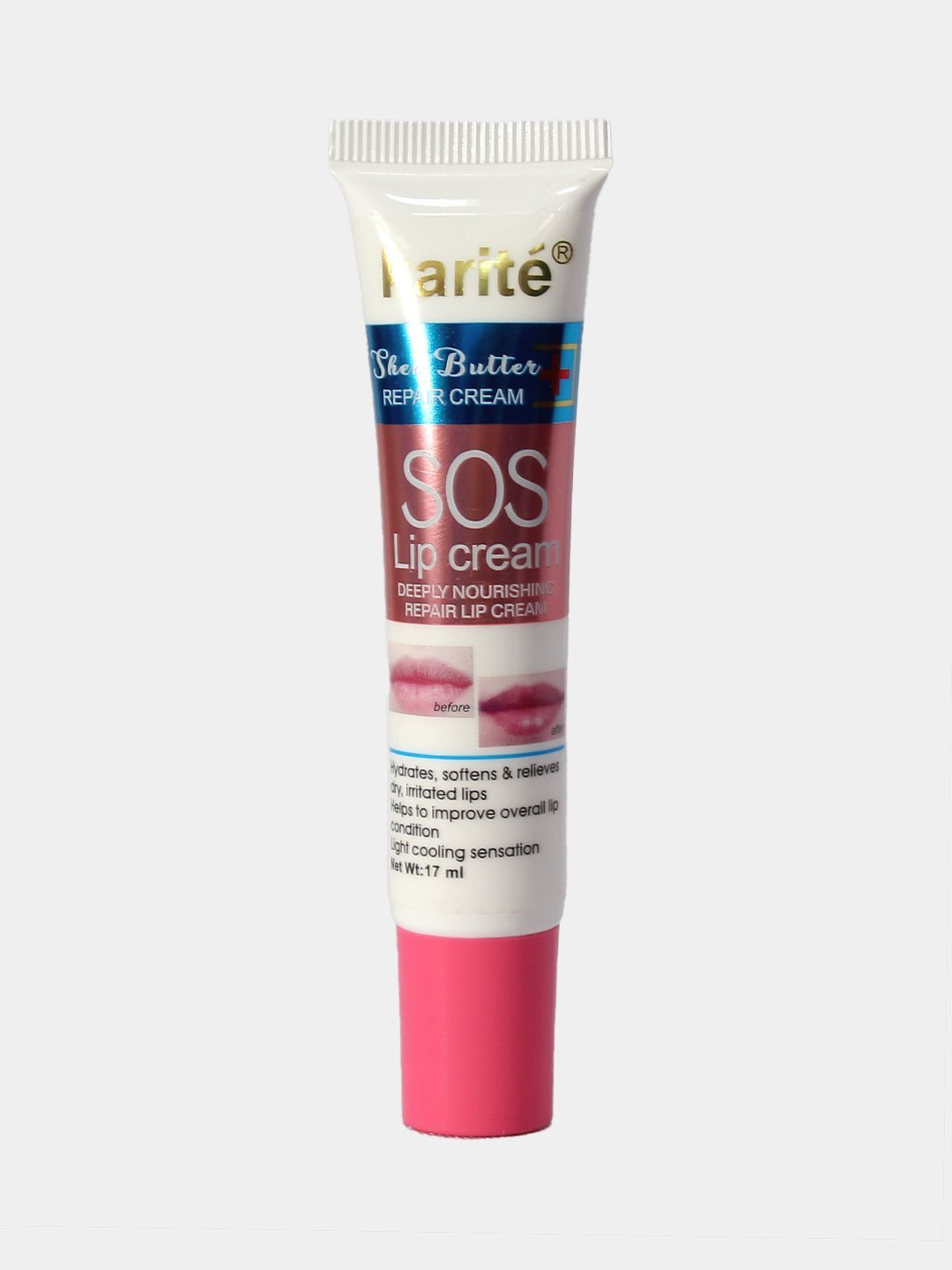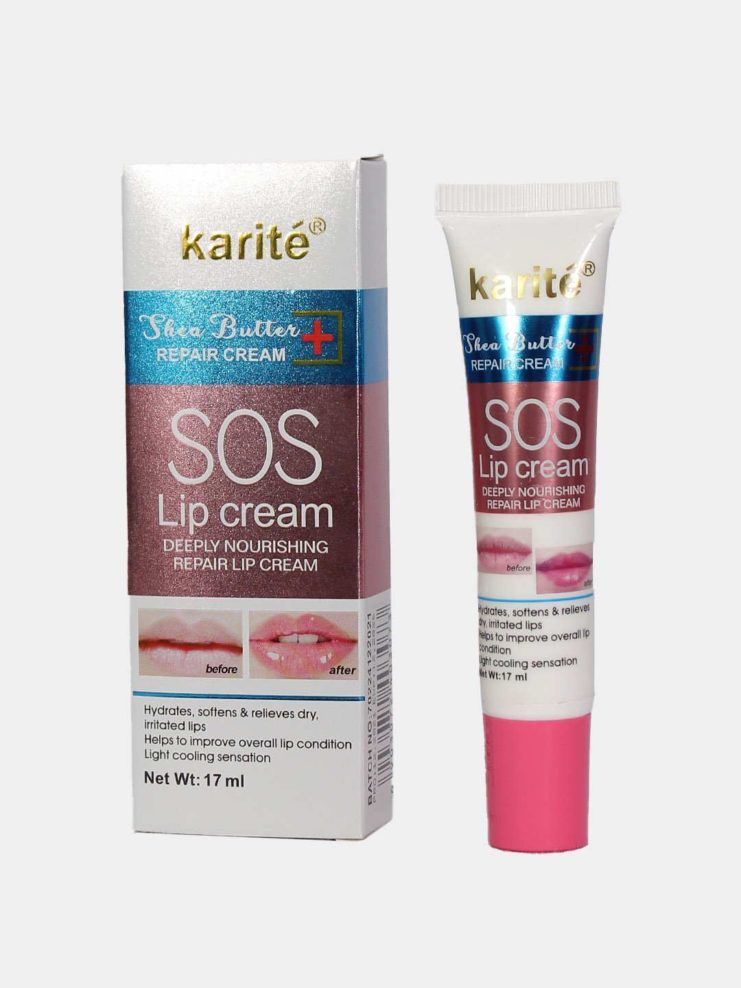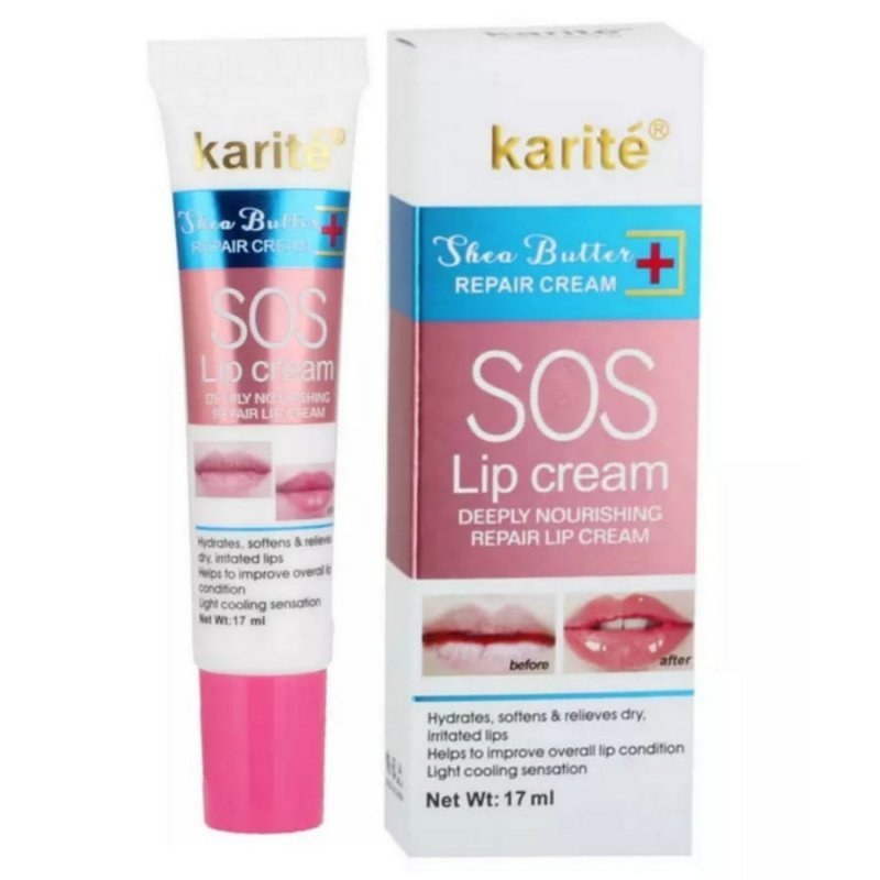 Ce produit est une crème pour les lèvres de la marque Karité, décrite comme une crème nourrissante et réparatrice.